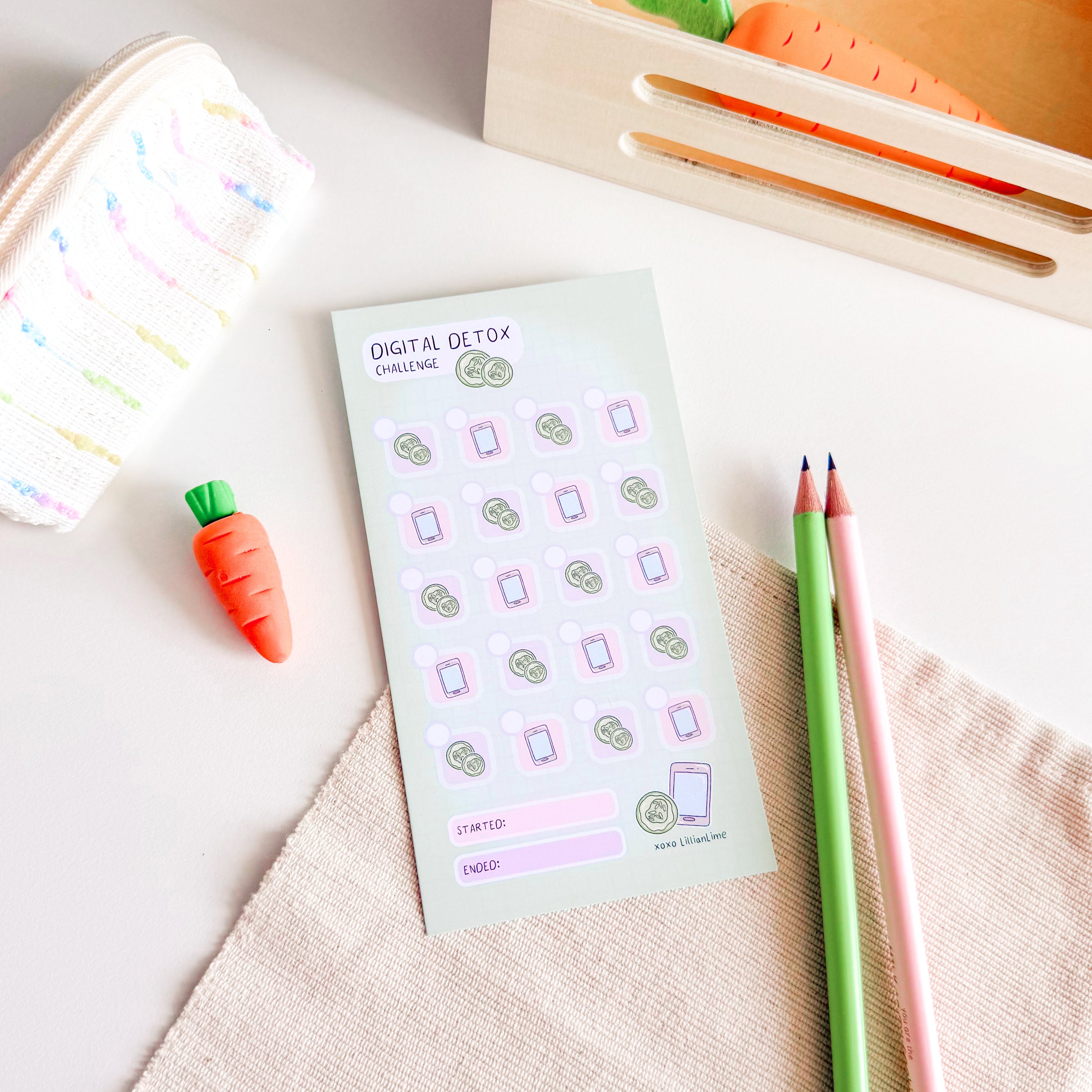 Bereit für eine neue Challenge? Diese süße Karte motiviert Dich Deine digitalen Geräte einfach mal wegzulegen und Dir so eine kleine Auszeit zu schenken! Kreuze nach jedem Mal ein süßes Doodle an. Na wie schnell schaffst Du es alle Kästchen abzuhaken?