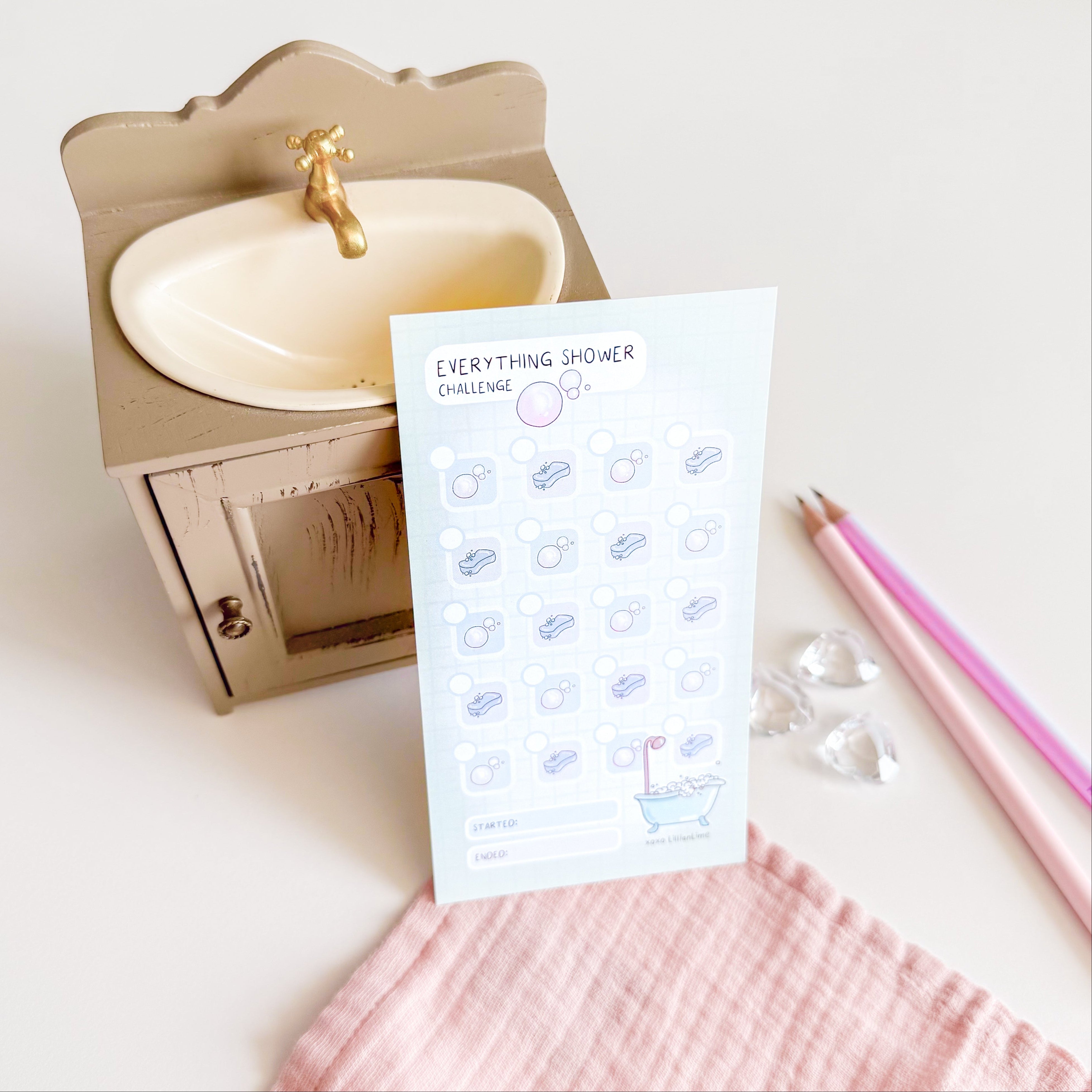 Bereit für eine neue Challenge? Diese süße Karte motiviert Dich Dein Beautyprogramm durchzuziehen und Dir selbst etwas Gutes zu tun! Kreuze nach jedem Mal ein süßes Doodle an. Na wie schnell schaffst Du es alle Kästchen abzuhaken?