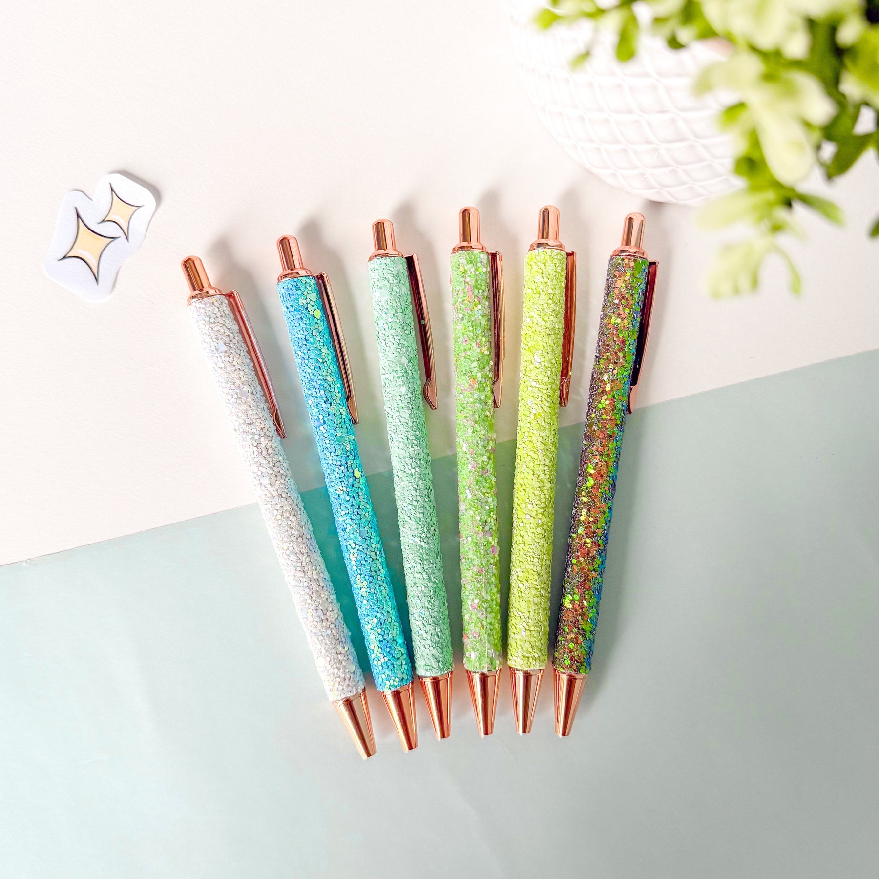 Schluss mit langweiligen Stiften! Diese Kugelschreiber im Glitzer Design, sind nicht nur ein absoluter Hingucker, auch wird mit ihrer Hilfe jeder Aufschrieb zu einem wahren Kunstwerk!