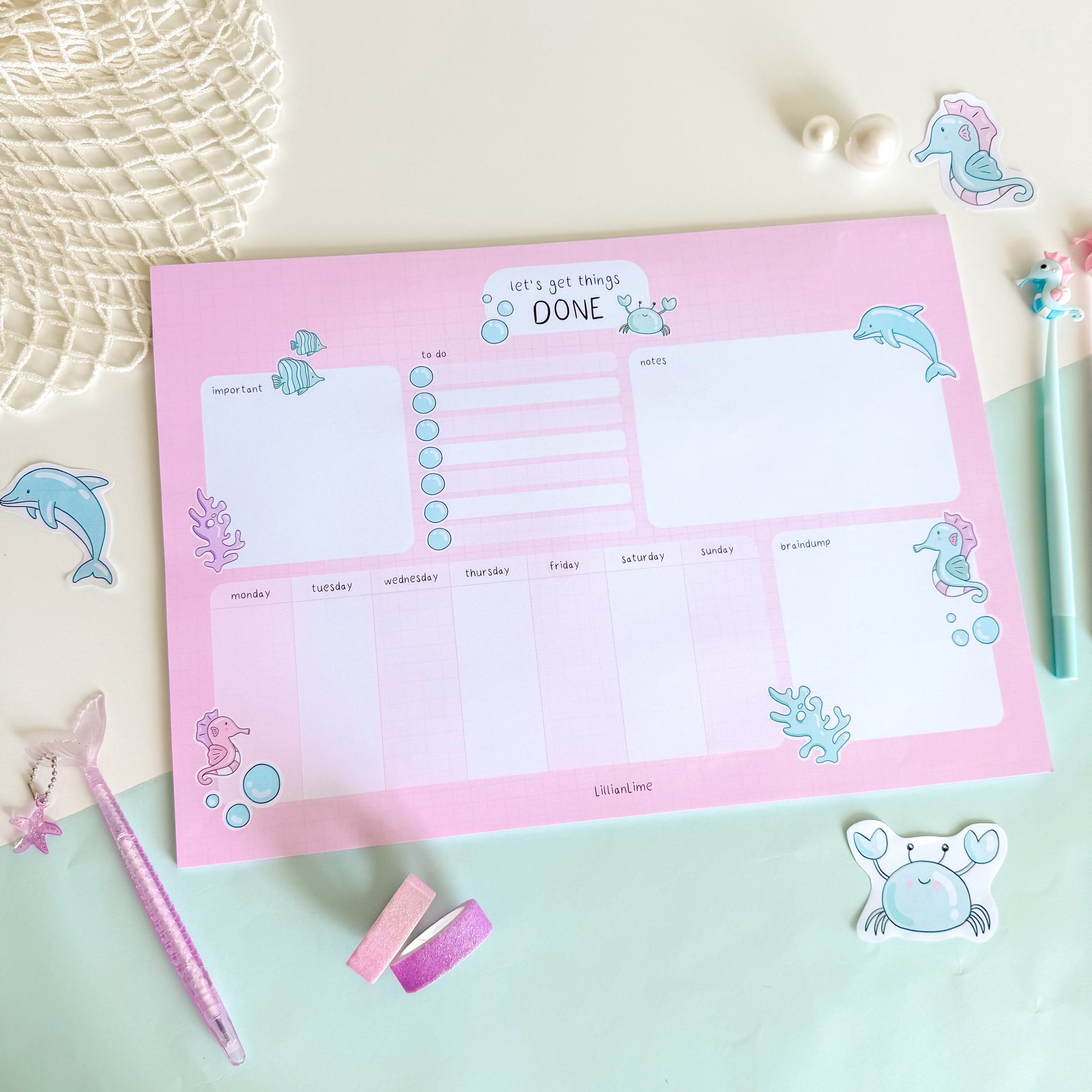 Ganz nach dem Motto "Let's get things done!" unterstützt dich diese süße Schreibtischunterlage bei deiner Wochenplanung. Du hast hier genug Platz um alle Gedanken und To Dos festzuhalten, die dir durch den Kopf gehen. Mit ihrem süßen Design schenkt dir diese Schreibtischunterlage eine Menge Motivation und bereitet Lust auf alles was geplant ist.